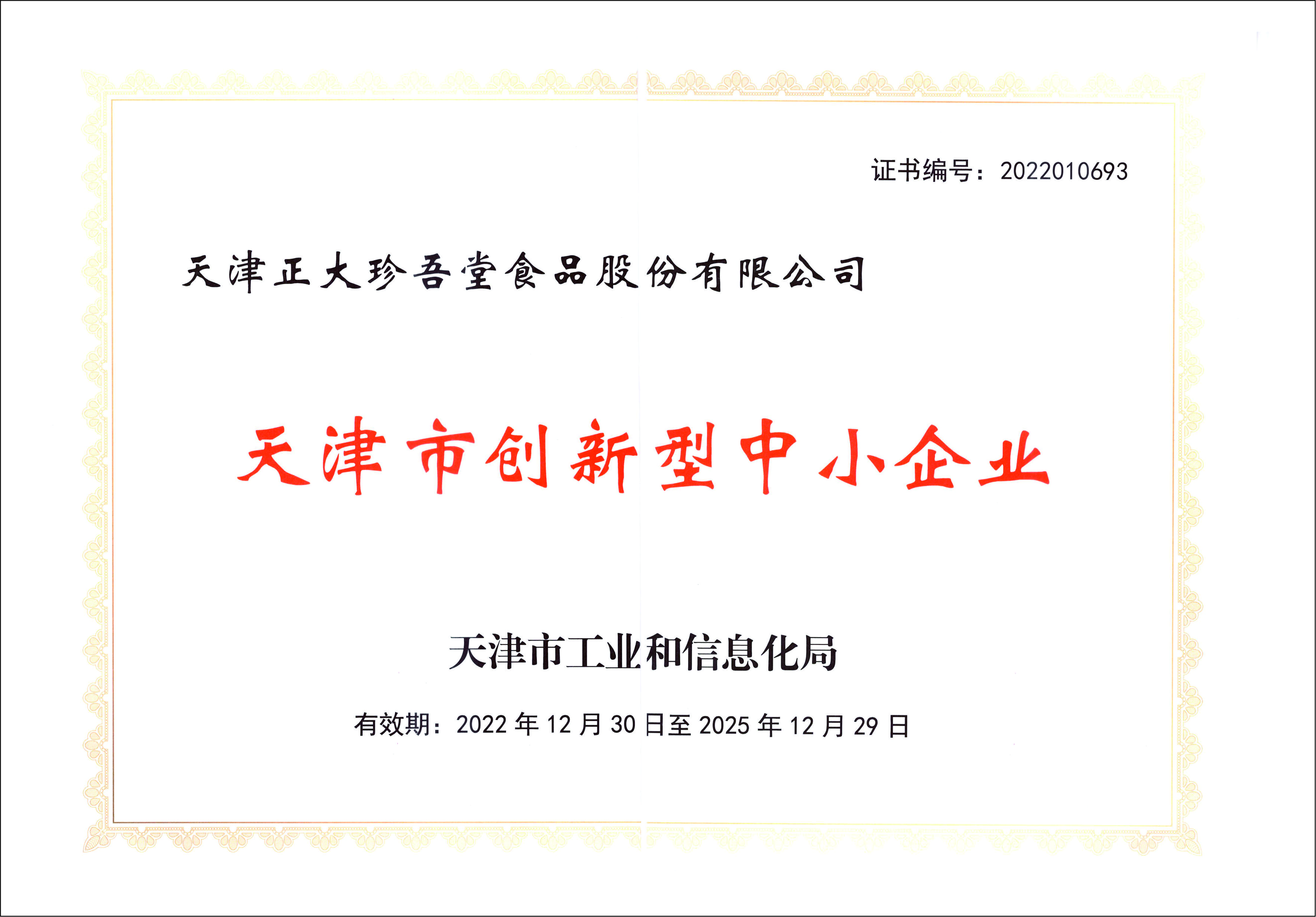 近年来,正大珍吾堂作为国家高新技术企业,正大清江制药旗下大健康产业,在正大清江的鼎力支持下,持续加大研发投入,截止目前获得专利17项,商标19个,与天津科技大学等多个院校建立产学研合作,并于先后获评科技型中小企业、天津市瞪羚企业等。此次创新型中小企业荣誉是企业与时俱进,以研发技术创新为核心的充分体现,也是企业形成以技术、品牌、制度、管理、文化等全面持续创新能力的新突破。